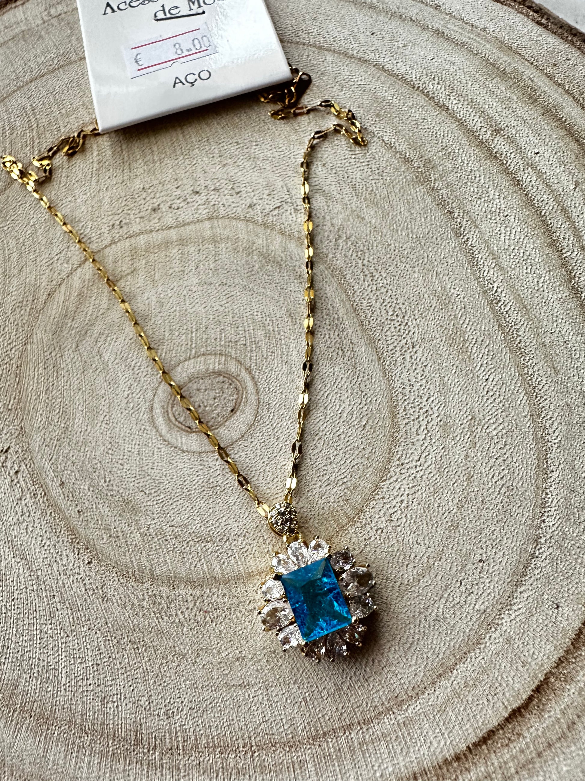 Este colar, em aço inoxidável, tem uma beleza estrondosa, com o seu brilho e a sua cor vibrante azul!
