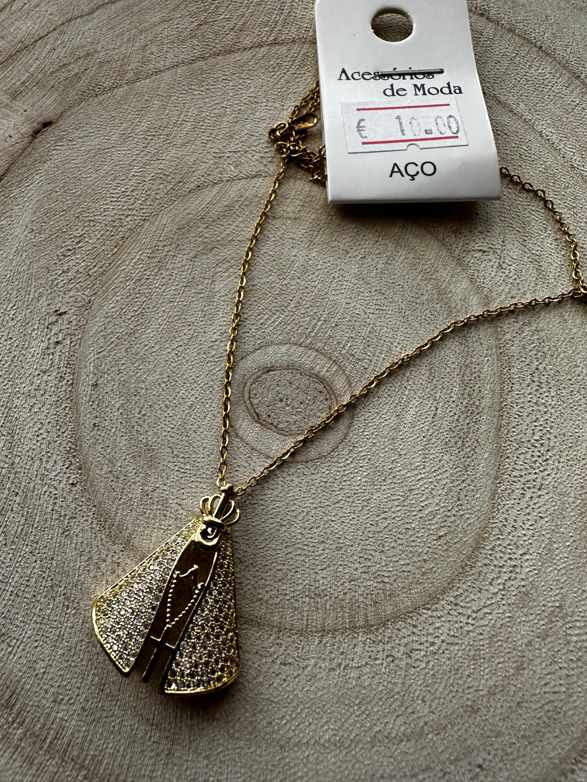 Colar em aço inoxidável, com a Nossa Sra de Fátima cravada a zirconias!